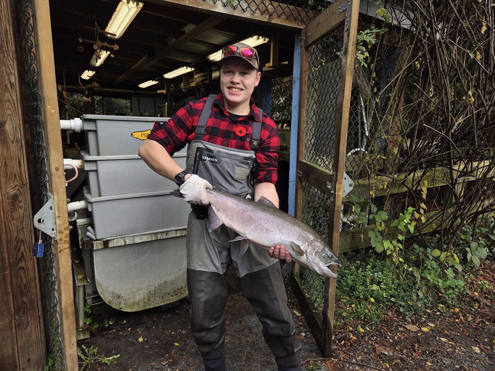Matthew began volunteering with us in 2021 as a Grade 12 student eager to gain hands-on experience in fisheries. From the beginning, his curiosity and enthusiasm stood out. He quickly immersed himself in hatchery operations, learning about the salmon life cycle, improving his technical skills, and becoming a reliable member of our team.